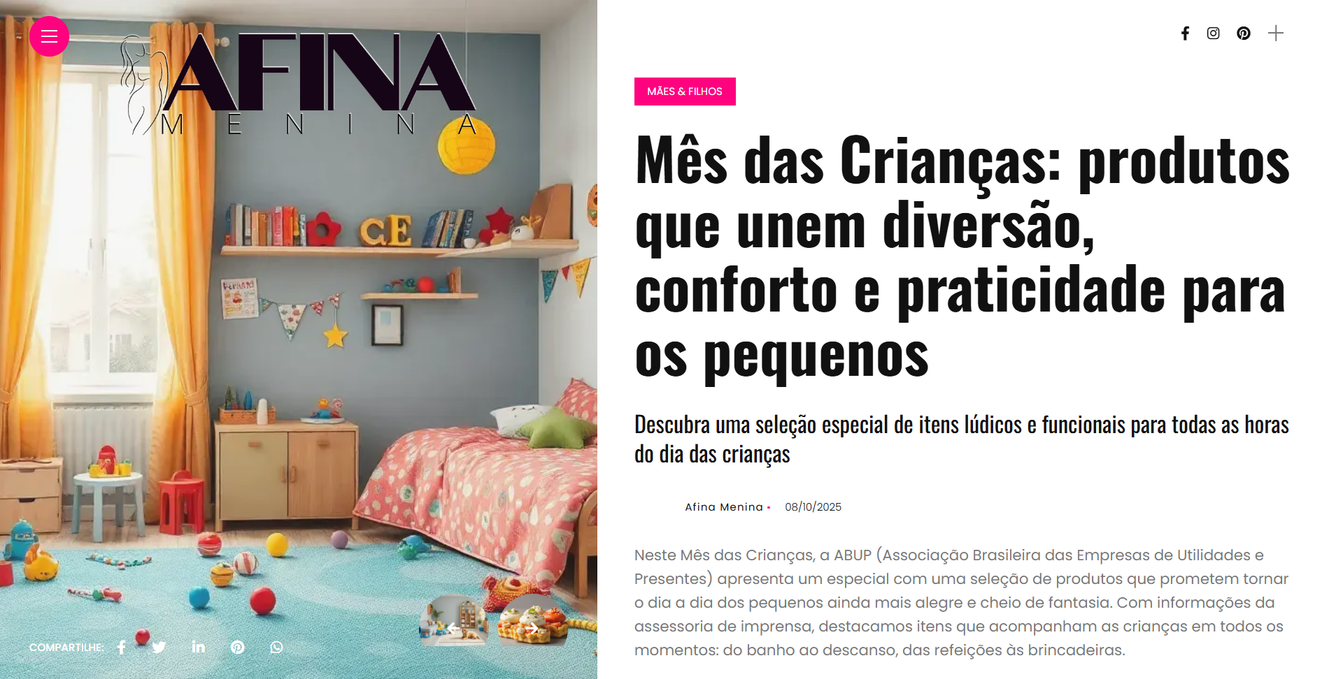 AFINA MENINA: Mês das Crianças – produtos que unem diversão, conforto e praticidade para os pequenos