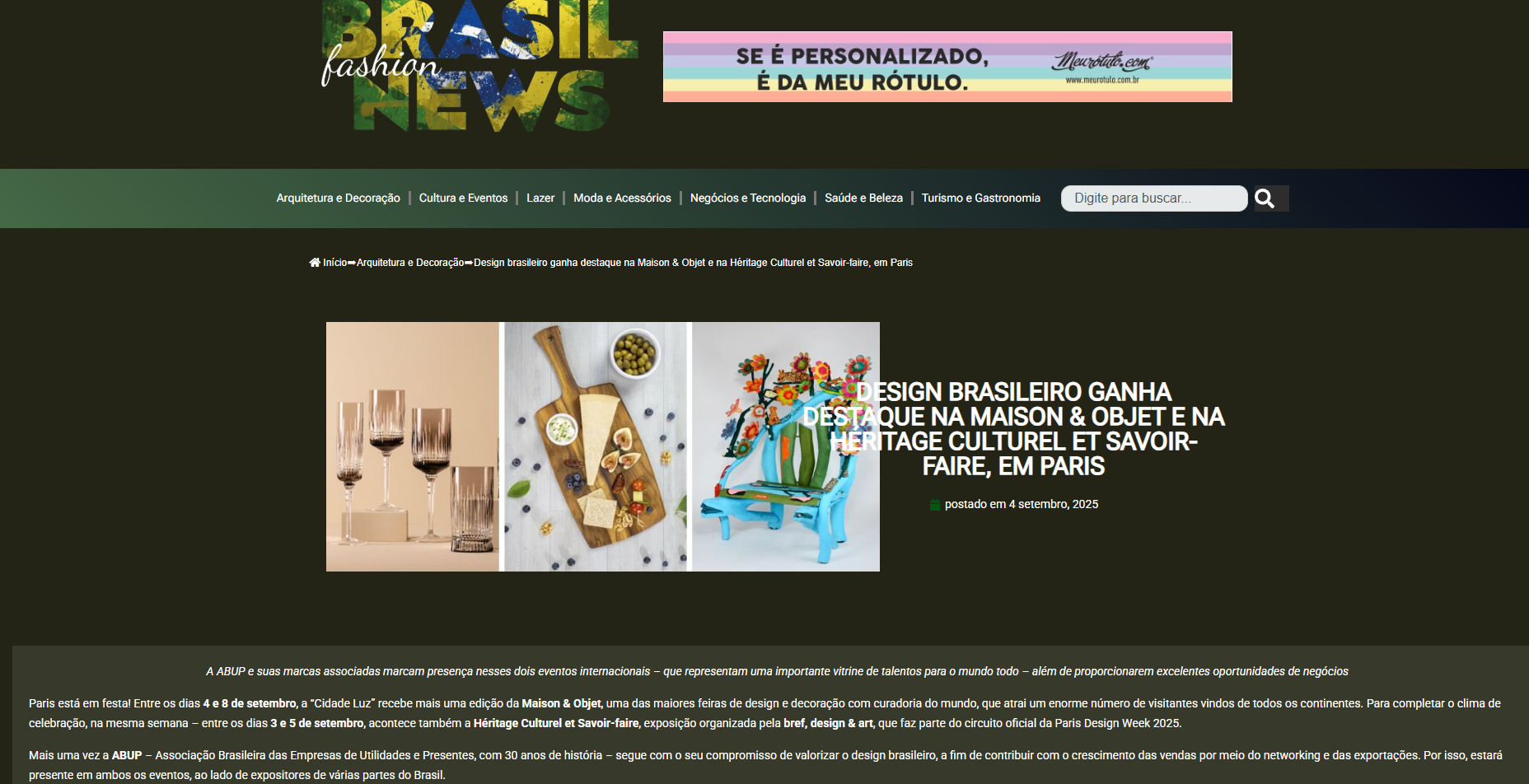 ABUP > Na mídia (Imprensa) > BRASIL FASHION NEWS – Design brasileiro ganha destaque na Maison & Objet e na Héritage Culturel et Savoir-faire, em Paris