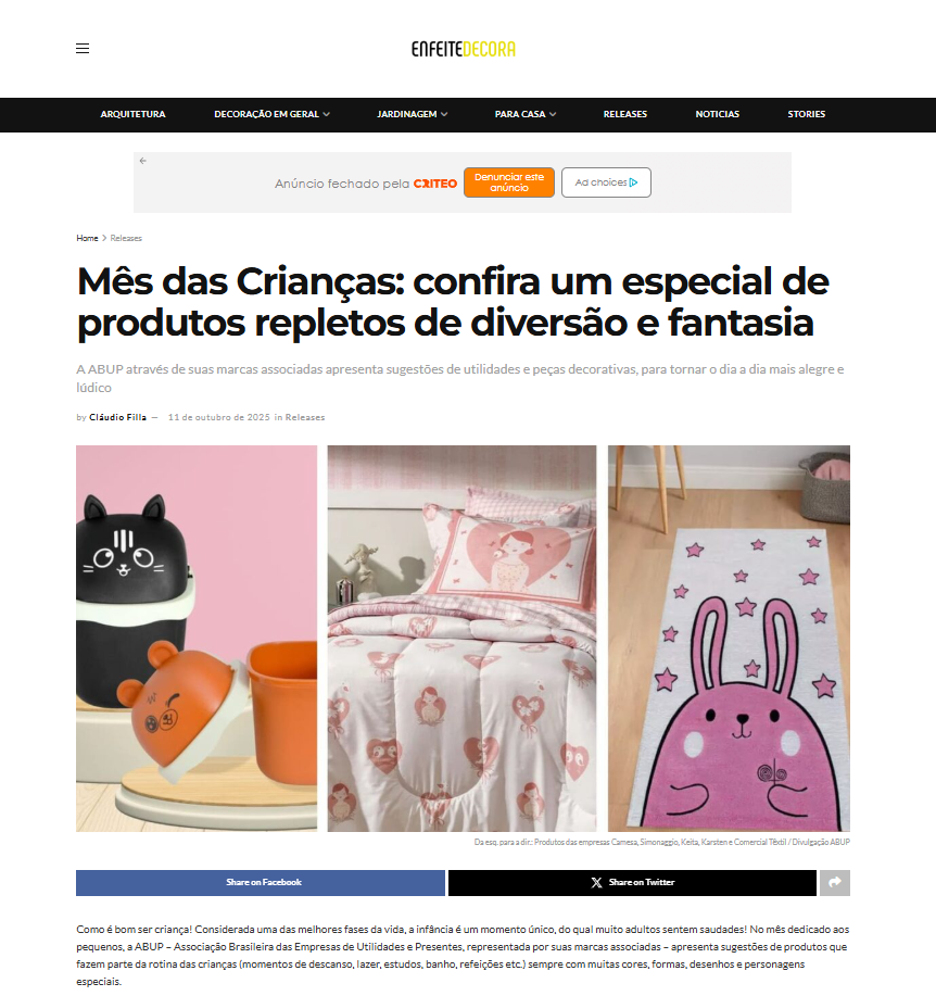 27/10/2025A ABUP através de suas marcas associadas apresenta sugestões de utilidades e peças decorativas, para tornar o dia a dia mais alegre e lúdico.