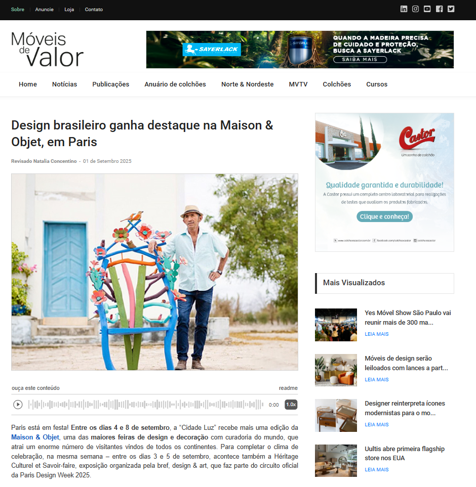ABUP > Na mídia (Imprensa) > MÓVEIS DE VALOR – Design brasileiro ganha destaque na Maison & Objet, em Paris
