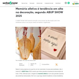 SONHAR & MORAR – Memória afetiva é tendência em alta na decoração, segundo ABUP SHOW 2025