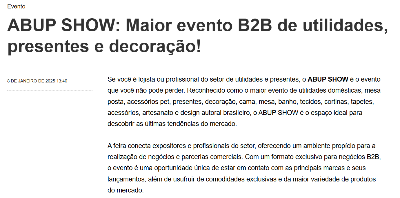PORTAL BRASIL – ABUP SHOW: Maior evento B2B de utilidades, presentes e decoração!