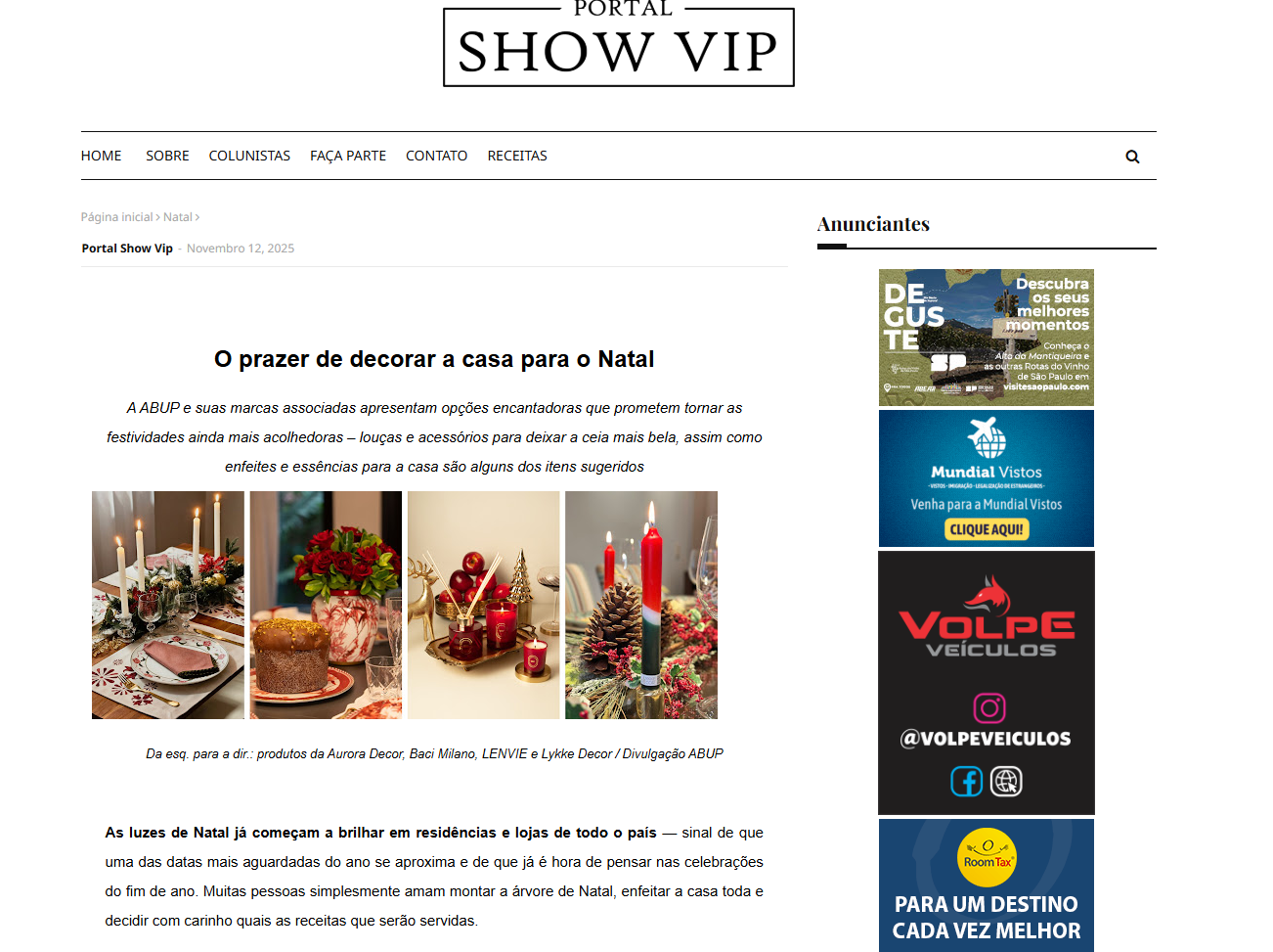 13/11/2025A ABUP e suas marcas associadas apresentam opções encantadoras que prometem tornar as festividades ainda mais acolhedoras – louças e acessórios para deixar a ceia mais bela, assim como enfeites e essências para a casa são alguns dos itens sugeridos.