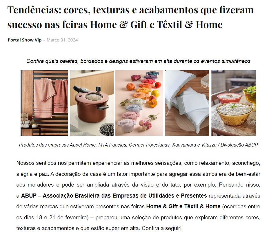 PORTAL SHOW VIP – Tendências: cores, texturas e acabamentos que fizeram sucesso nas feiras Home & Gift e Têxtil & Home