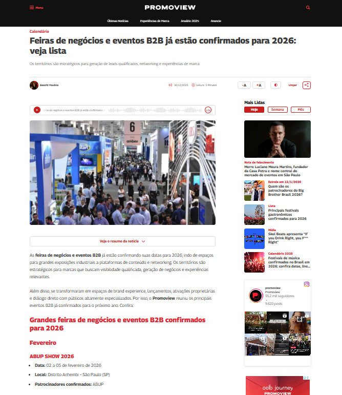 Além disso, se transformaram em espaços de brand experience, lançamentos, ativações proprietárias e diálogo direto com públicos altamente especializados. Por isso, o Promoview reuniu os principais eventos B2B já confirmados para o próximo ano.