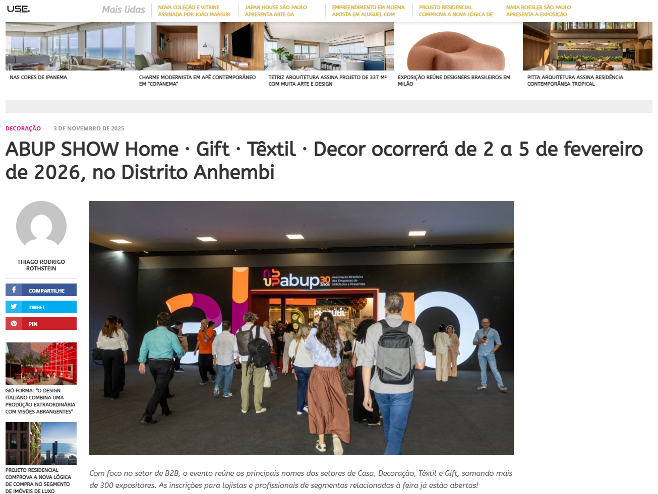 REVISTA USE – ABUP SHOW Home · Gift · Têxtil · Decor ocorrerá de 2 a 5 de fevereiro de 2026, no Distrito Anhembi