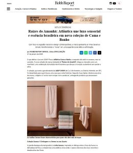 ABUP > Na mídia (Imprensa) > ROBB REPORT BRASIL- Raízes do Amanhã: Atlântica une luxo sensorial e essência brasileira em nova coleção de Cama e Banho