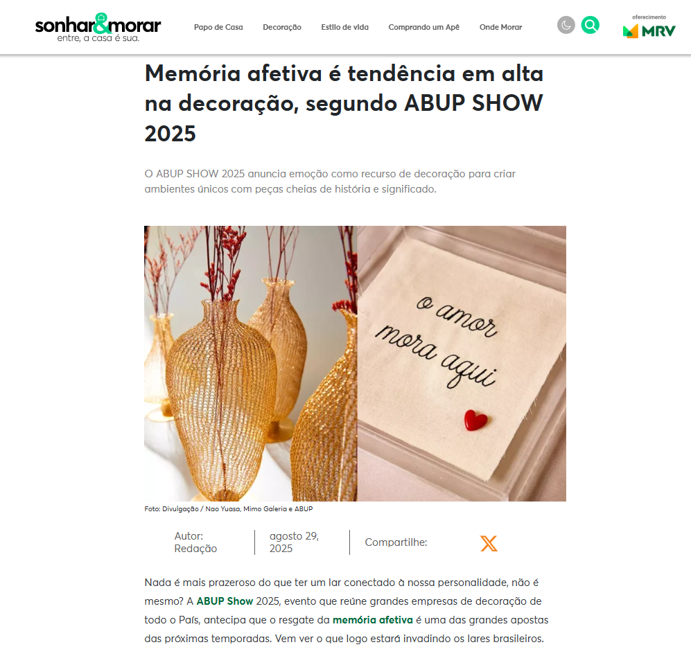 SONHAR & MORAR – Memória afetiva é tendência em alta na decoração, segundo ABUP SHOW 2025