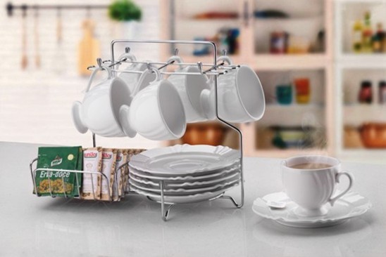 Depois de tomar chá, para deixar tudo arrumado, a Utimil apresenta o suporte para xícaras, pires e sachês, que além de organizar e decorar o ambiente, deixa tudo à mão. No total, acomoda 6 xícaras, 6 pires, sachês, cápsulas ou guardanapos. Mais informações: www.utimil.com.br
