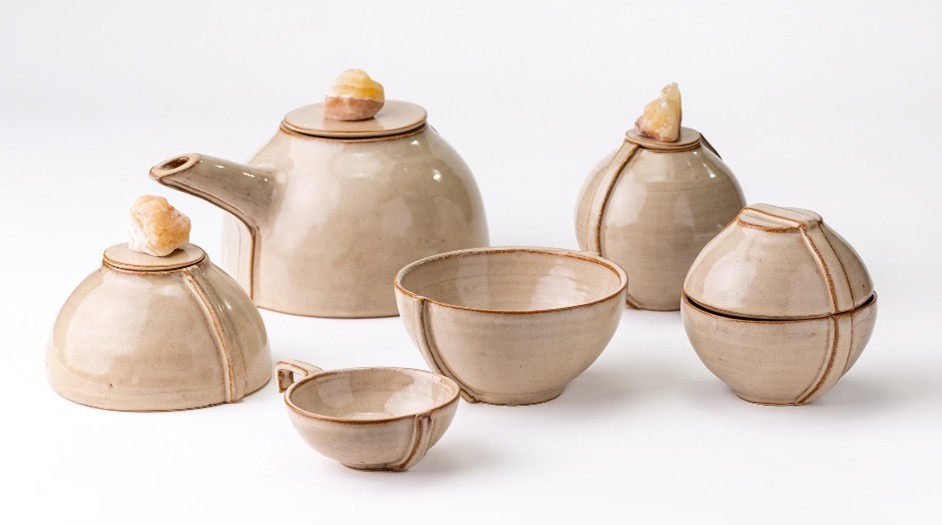 Assinada pela ceramista Paula Sousa, a Coleção Enlace, do Studio SALP, traduz o equilíbrio entre o simples e o essencial. Os tons neutros do esmalte recebem a matéria bruta da pedra natural, criando peças de presença única. As cerâmicas unem técnicas de torno e colagem e traços geométricos que trazem toque de modernidade à mesa. Entre as peças estão bule (10 x 30 x 15cm), açucareiro (8 x 11 x 11cm), bowl (6 x 11 x 12cm) e xícaras (4 x 8 x 11cm). Mais informações: www.studiosalp.com