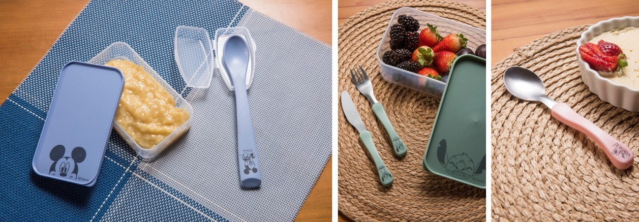 Da esq. para a dir.: colher baby e linha de talheres kids / Divulgação Simonaggio e ABUP