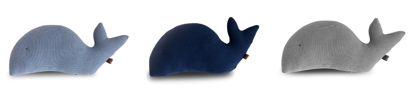 A almofada Baleia, tamanho P, da Rian Tricot, faz parte da coleção Bichos e pode ser usada para integrar camas ou sofás com muito estilo. Além do efeito decorativo, a peça se torna uma companheira da criança nos momentos de brincadeiras ou para dormir. Com tamanho aproximado de 20x30cm, o produto é feito em tricot, que traz um toque de aconchego ao ambiente. O material é 50% algodão e 50% acrílico. Disponível em três cores (azul claro, azul escuro e cinza). Mais informações: www.riantricot.com